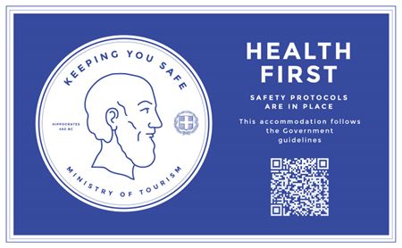 A complete medical kit according to Greek Government Guidelines, is available. The kit contains disinfectant wipes, face masks, face shield, thermometer, gloves, protective apron, full-length long-sleeved gown and waste bag.